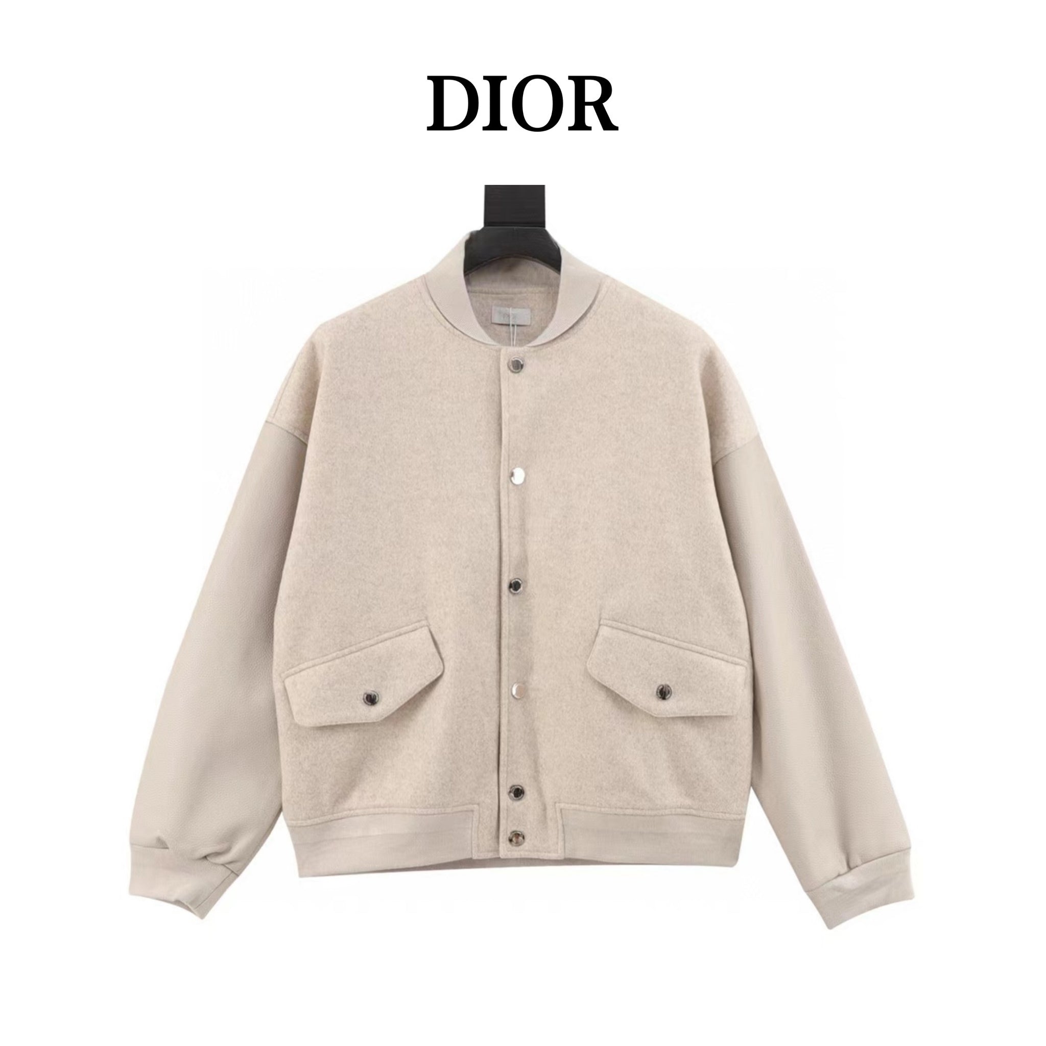 جاكيت بيسبول من ديور بأكمام جلدية وظهر مطرز بأحرف