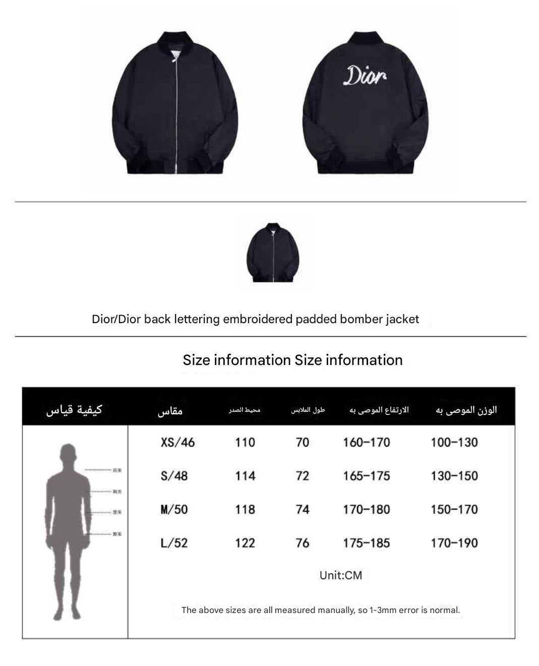 جاكيت بومبر مبطن من ior/Dior مع تطريز مونوغرام على الظهر